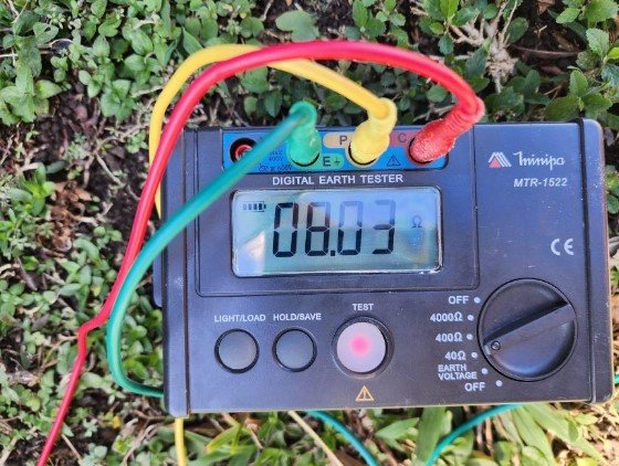 - Medição de continuidade elétrica do sistema com miliôhmetro da Instrument, conforme a norma exige